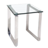 Modern striking bold design, brilliant polished stainless steel sled legs, and tempered glass table top. With sleek lines and ample display space, this end table is ideal for your framed photos, flowers, and more, adding style and functionality to any of your living area decor.