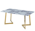 Designed with a glam look in a fashionable White marble tabletop, this rectangular dining table goes all out with modern style, sneaking in the retro feel of a texturizing effect made of sustainable materials. Minimalist floating design, adding an artistic mood to a contemporary dining space.